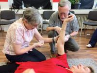 Auch bei den anderen Übungen waren alle Teilnehmerinnen und Teilnehmer begeistert bei der Sache. So war der Erste-Hilfe-Kurs bei den Maltesern keine „knochentrockene Angelegenheit“, sondern es hat allen viel Spaß gemacht dabei zu sein. Und gelacht wurde natürlich auch.