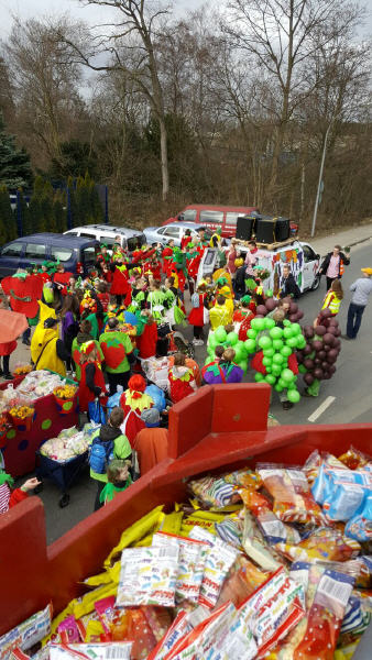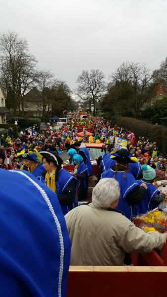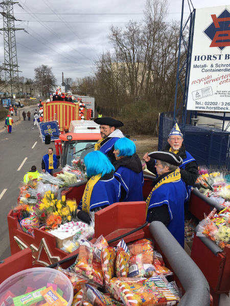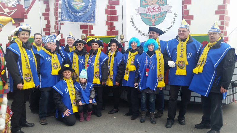 Ebenfalls unter dem Motto ,,Vom Höhnerstall bes Huh em All, üvverall es Karneval!” und bei ein paar Sonnenscheinstrahlen zum Zugstart, war unser "BBB-Schmölzje" wiederum mit einem Festwagen, einer "Burg auf Rädern" Teil des Karnevalszuges in Bergisch Gladbach am 26. Februar 2017. Unser Organisationskomitee hatte die BBB-Gruppe reichlich mit Wurfmaterial versorgt. Mit Strüßje und Kamelle als Wurfmaterial konnten wir "unsere Burg" gegen die gut 80.000 Jecken am Zugweg verteidigen. Einige davon konnten wir sicherlich auch als "jecke Verbündete" gewinnen. All diese glücklichen Gesichter, die aufgeregten Kinder, all die fröhlichen und ausgelassenen Karnevalsjecken in ihren bunten und phantasievollen Kostümen. Einfach ein ganz besonderes Erlebnis für uns als Teil der gut 2.800 Zugteilnehmer. "Dat wor esu schönn ...".