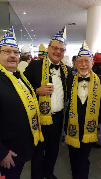Den Straßenkarneval 2017 in unserer Heimatstadt Bergisch Gladbach eröffneten wir mit einer Abordnung im Rahmen der karnevalistischen Aktivitäten des Festkomitees Bensberger Karneval an Weiberfastnacht in der Schlossstraße. Vom Start beim karnevalistischen Treiben in der Bensberger Bank bis hin zum "Schlüssel-Übergabekampf" am Rathaus waren wir dabei.