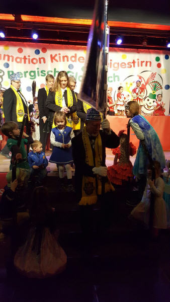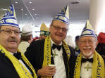 Auch das noch amtierende sowie das bereits designierte Dreigestirn waren - unter sicherer Begleitung von Prinzenführer Michael Hiltscher - mit Freude und Elan bei unserem „ersten“ Frühschoppen mit Kölschen Programm dabei. Unser Präsident überreichte dem noch im Amt befindlichen Dreigestirn mit Prinz Volker I. (Beuthert), mit Jungfrau Silke (Hermann) und Bauer Alfred (de Martin), passend zur ihrer tollen Leistung in der abgelaufenen Session, je eine Packung Schokolade in der französischen Übersetzung für „Danke“. Ob das designierte Dreigestirn der Session 2018 mit Prinz Benno I. (Bernhard Schmitz), mit Jungfrau Anja (Schmitz) und Bauer Peter (Sommer), genauso beim Publikum ankommen wird, weiß man noch nicht. „Wir lassen uns gerne überraschen“ meinte unser Präsident Torsten Keil und überreichte den designierten Regenten über das närrische Volk je ein besonders großes "Überraschungs-Ei". Wir freuen uns auf die Proklamation am 11. Januar 2018 im Großen Saal des Bürgerhauses Bergischer Löwe, ab 19.11 Uhr.