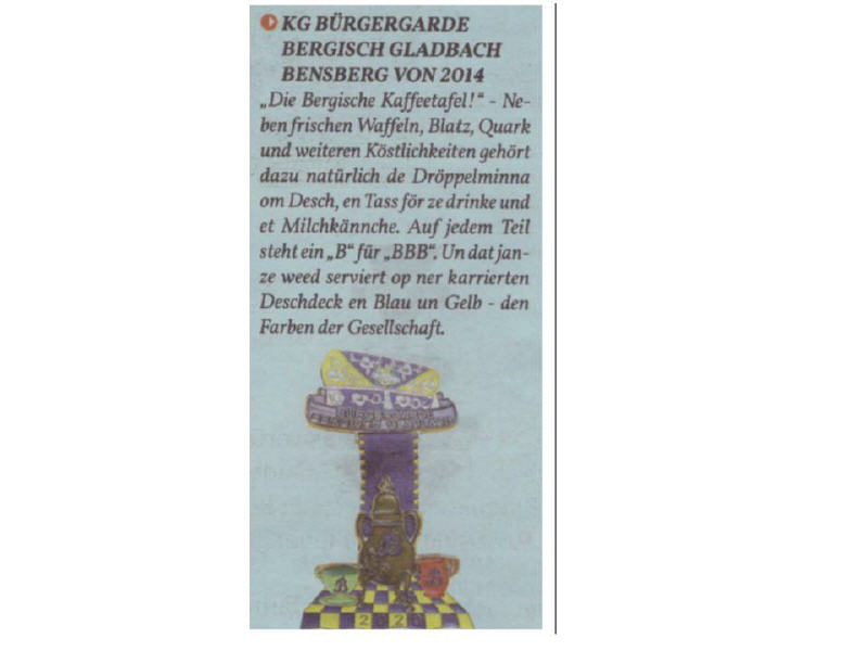 Den Straßenkarneval 2020 in unserer Heimatstadt starteten wir mit der Ratshaus-Erstürmung 2020 in Bensberg an Weiberfastnacht als verantwortliche KG für Organisation und Durchführung. Die Bergische Kaffeetafel für den Bürgermeister nebst Ehefrau kam gut an, auch das "Volk" wurde mit Waffeln bedacht. Insgesamt eine gelungene Veranstaltung.