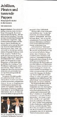 Mit einem kräftigen „Alaaf!“ und einer ordentlichen Portion Piratenpower hat die "KG Bürgergarde Bergisch Gladbach Bensberg 2014 e.V." ihre neue Session eröffnet – und das gleich mit einem besonderen Anlass: "11 Jahre Bürgergarde", die sich als "Gesamt Vaterstädtischer Verein" für alle „Veedel“ in unserer Heimatstadt Bergisch Gladbach versteht. Zum ersten Mal mischten sogar die Refrather Piraten mit und brachten frischen Wind unter die niedrige Decke des „Growi“, wo die jecke Feierlaune schon beim Betreten spürbar war.